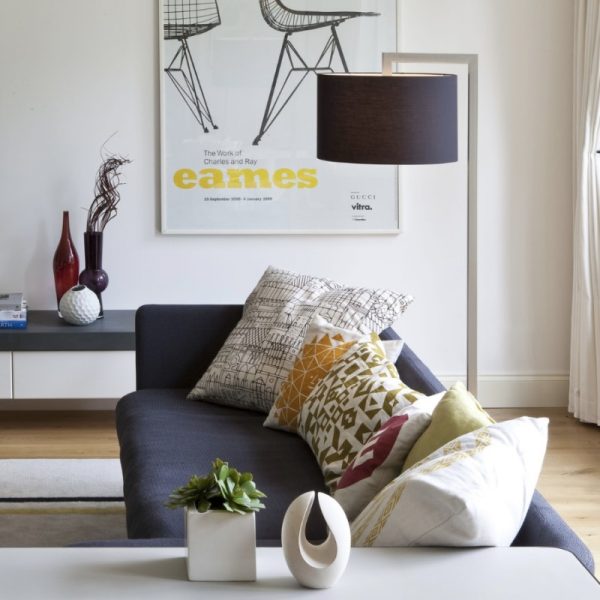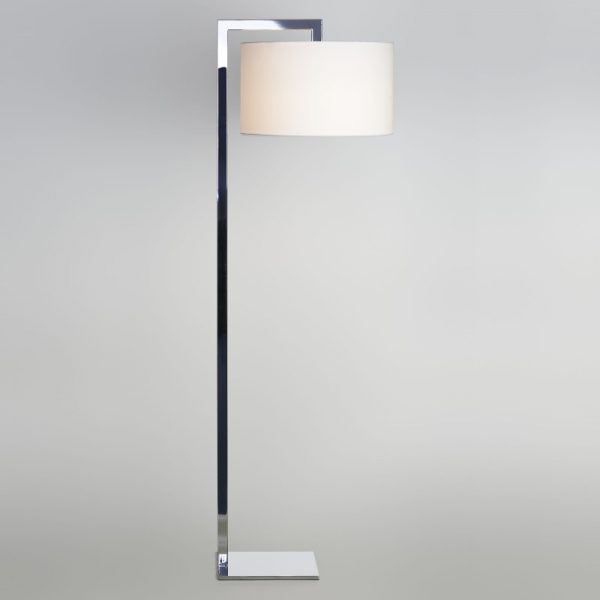 Ravello single light floor lamp features a square design base plate in polished chrome, bronze or matt nickel finish with slender stem and an angular arm pointing downwards. A sleek, contemporary design that will complement modern elegant interiors.