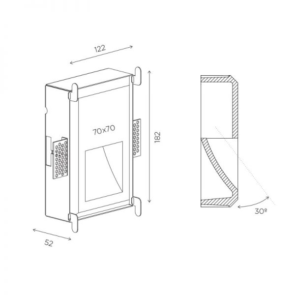 Seamless integrated LED wall light in square shape with asymmetrical light beam. The fixture is fully integrated with the surrounding without any frames or joints, hiding the product entirely from sight in order to emphasize exclusively the light. Its surface can be painted as desired.