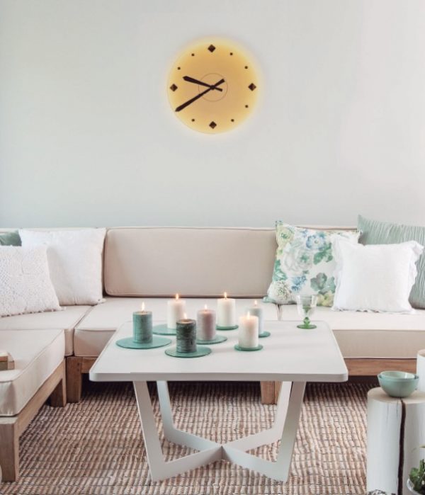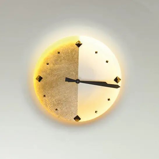 An original design seamlessly integrated wall clock illuminated by LED. The white/gold dial with the black Swarovski crystal hour-markers tell time in style while provide timeless elegance to any interior.
