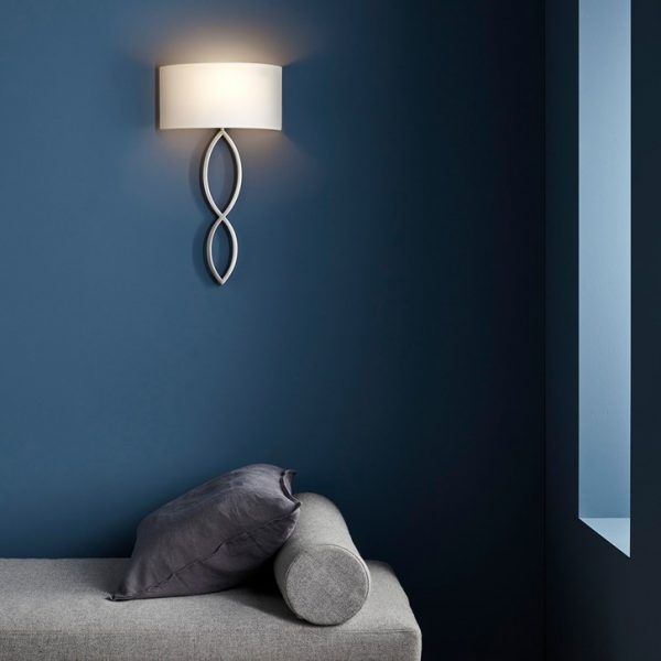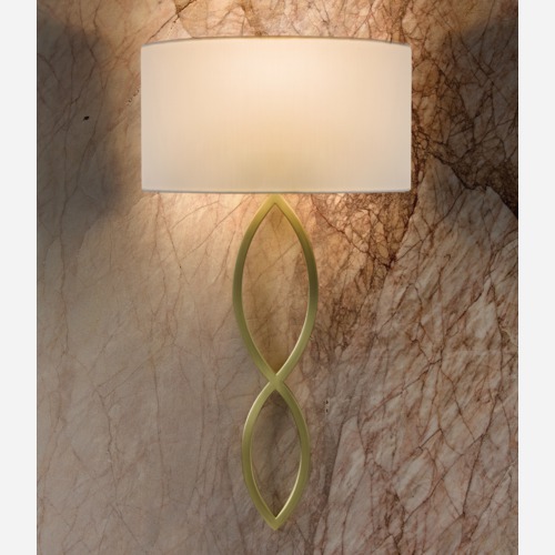 Double loop based wall light with semi cylindrical lamp shade. As the indirect light scattering on the wall it provides a warm atmosphere to modern interiors.