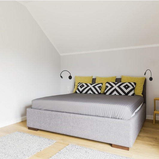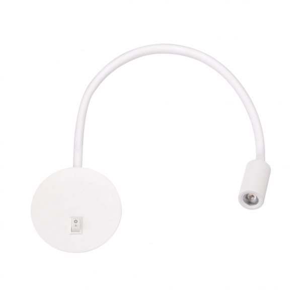 Reading LED wall lamp with adjustable flexible arm in matt black or matt white finish. Equipped with integrated ON/OFF switch.