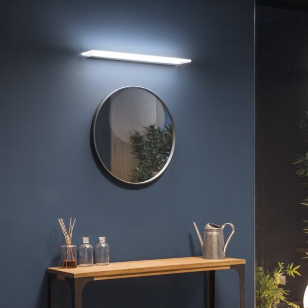 Thin plate LED light in an elegant clean style with a laser silk-screen printed methacrylate diffuser.