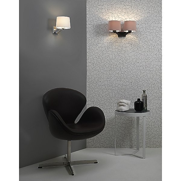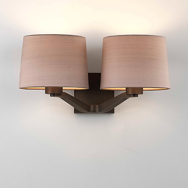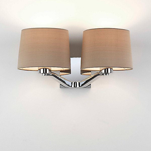 Twin arm wall light in modern style with cylindrical lamp shades. Uses 2xE27 lamp (excl).